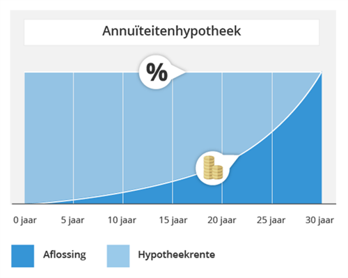De meeste Nederlanders kiezen op dit moment voor een annuïteitenhypotheek. Dat komt omdat deze hypotheekvorm zekerheid geeft. De bruto rente plus de aflossing zijn samen elke maand één vast bedrag. Dat bedrag noemen we 'de annuïteit'. Door deze annuïteit weet je waar je aan toe bent: je betaalt iedere maand hetzelfde.