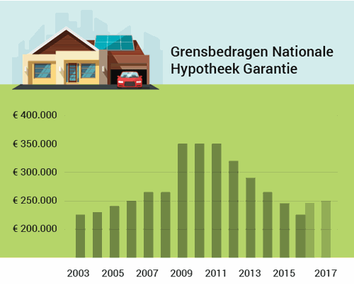 In 2009, midden in de crisis, werd het bedrag waarvoor je een hypotheek met NHG kon sluiten fors verhoogd, van € 265.000 naar € 350.000. Dit om de woningmarkt te stimuleren en huizenkopers wat extra zekerheid te geven.