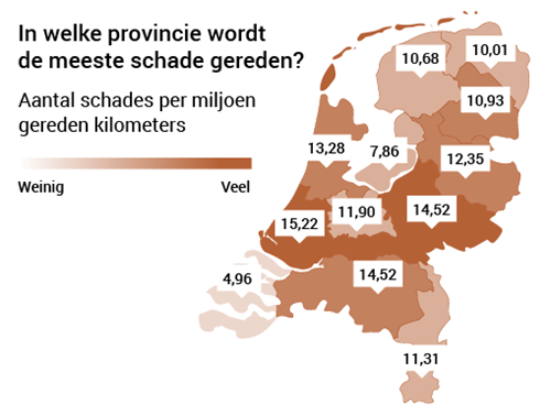 Expertisebureau CED heeft deze week de cijfers van 2015 op een rij gezet. Opvallend is dat je in de provincie Zeeland met afstand de kleinste kans op schade hebt. Daar wonen minder mensen zul je zeggen, maar zelfs gecorrigeerd voor het aantal gereden kilometers zijn de verschillen enorm. In Zuid-Holland worden per miljoen gereden kilometers ruim drie keer zo veel schades gemeld als in Zeeland.