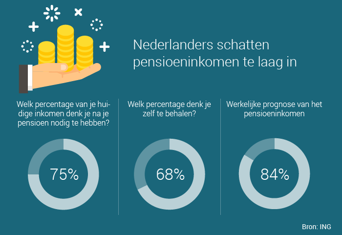 Bovenstaande is min of meer één van de conclusies van het economisch bureau van ING. Hun belangrijkste boodschap is een andere: Nederlanders overschatten het vermogen dat ze nodig hebben na hun pensioen. In werkelijkheid gaan velen er zelfs op vooruit als ze stoppen met werken.