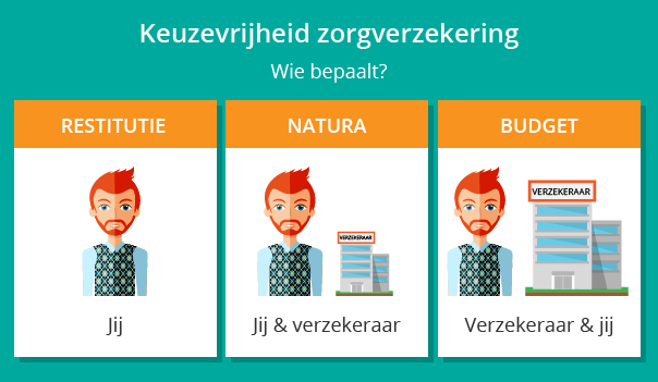 Keuzevrijheid in zorgverleners zie je terug in de drie soorten basis verzekeringen: een restitutiepolis, een naturapolis of een budgetpolis. Bij de restitutiepolis heb je de meest ruime keus in zorgverleners. Een budgetpolis is de meest uitgeklede vorm, doorgaans ook het goedkoopst.