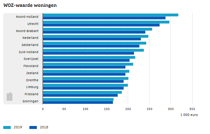 In alle provincies nam de WOZ-waarde toe, al gaat het in Groningen om een minieme stijging. Op plaatselijk niveau is Rotterdam koploper met een stijging van € 26.000 (16%). Amsterdam blijft achter met ‘slechts’ 11 procent. Over een langere periode staat de hoofdstad wel op nummer één, met een stijging van 64 procent sinds 2014. ‬