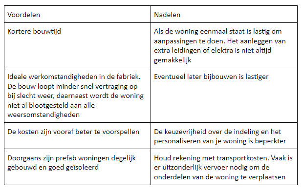 Prefab woningen hebben hun eigen kenmerken ten opzichte van reguliere bouw. Dit zijn enkele voor- en nadelen van prefab: