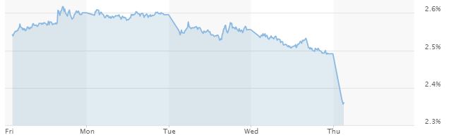 Verloop rente staatsleningen (10 jaar) afgelopen 5 dagen